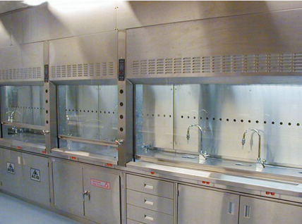 不銹鋼通風柜臺面:一次成型的不銹鋼操作臺面耐腐蝕,抗沖擊,易清潔。